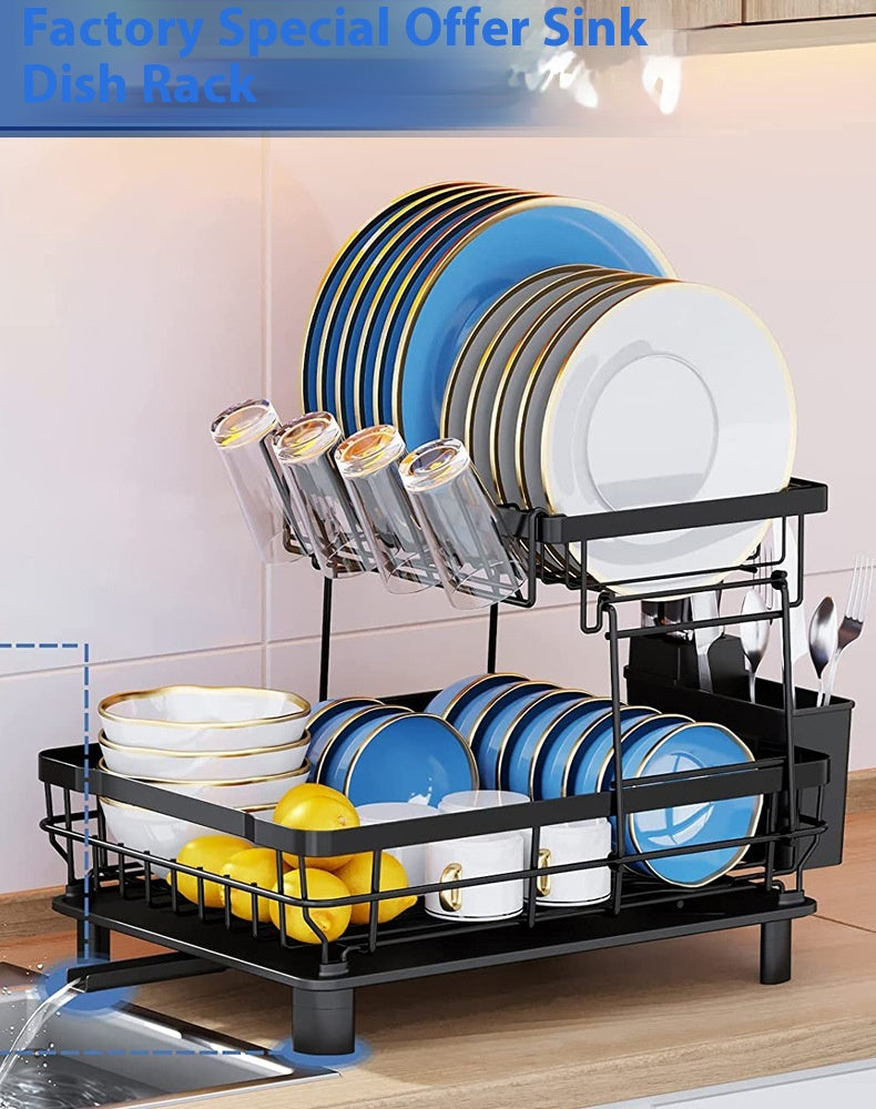 Porte-vaisselle en métal double couche pour bols de cuisine Baguettes 2 étages au-dessus de l'évier Séchoir à vaisselle Organisateur